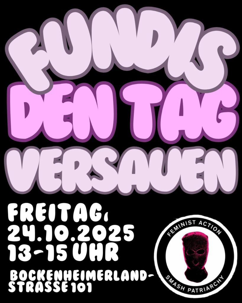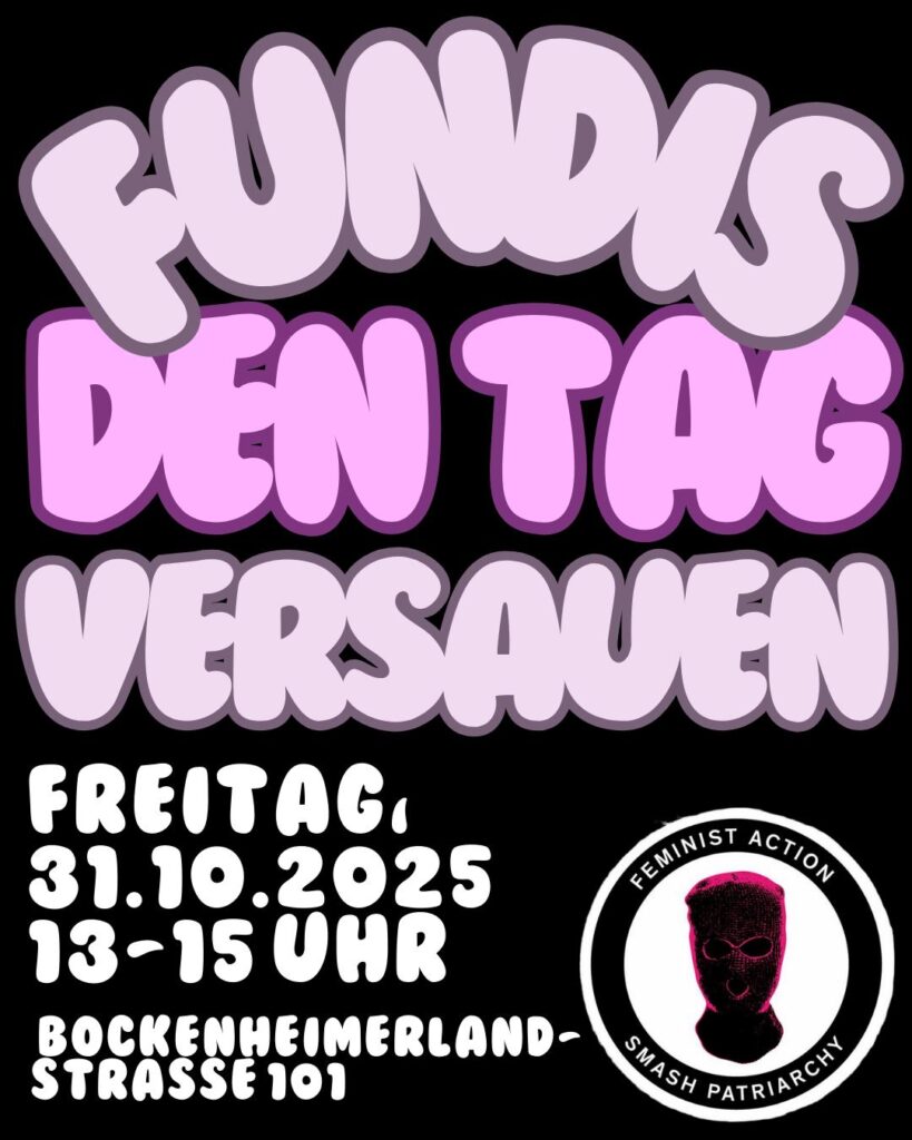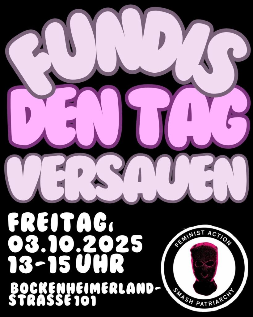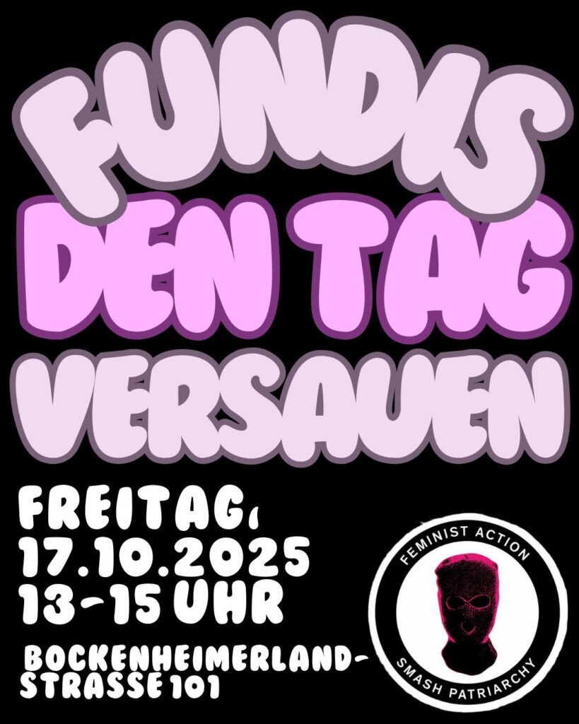 What the fuck?! Schon wieder AbtreibungsgegnerInnen in FFM? Same procedure as every year… Die christlichen FundamentalistInnen stehen vom 24.09. bis zum 02.11. wieder täglich vor ProFamilia und belästigen Menschen mit Uterus und Mitarbeiter*innen der Beratungsstelle. Mit ihrer antifeministischen Agenda greifen die Fundis das Recht auf körperliche Selbstbestimmung an und versuchen Menschen einzuschüchtern, die sich über Schwangerschaftsabbrüche informieren wollen. So weit, so eckelhaft… es ist an der Zeit, den Fundis den Tag zu versauen. Und was wäre schöner als das direkt jeden Freitag zu machen?