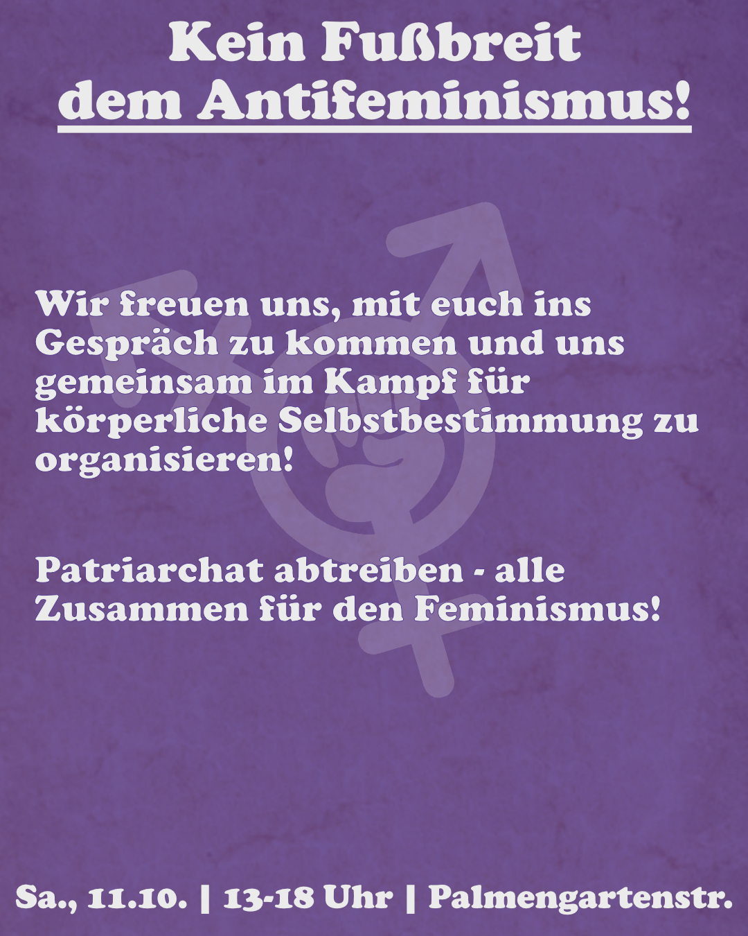Wir freuen uns, mit euch ins Gespräch zu kommen und uns gemeinsam im Kampf für körperliche Selbstbestimmung zu organisieren!